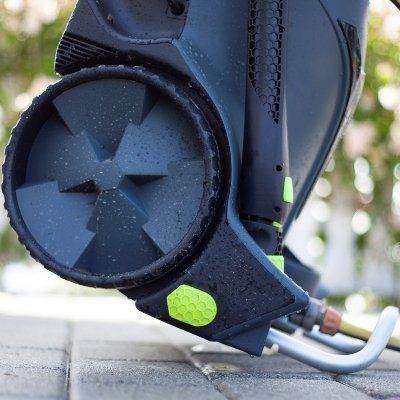 Die Geräte der AVA Master Serie weisen eine weitere Besonderheit auf, die sich im Alltag sehr bewährt hat und von der nicht nur die Nutzer, sondern auch Kritiker und Tester überzeugt sind: Am unteren Teil des Gehäuses befindet sich eine integrierte, herausziehbare Kippsicherung. Sie besteht aus einem Rohrrahmen, der im Nichtgebrauchsmodus der Geräte versenkt im Gehäuse schlummert und erst bei Betrieb der Reiniger herausgezogen wird. Er ist so platziert, dass er das Gerät auch dann vorm Umkippen schützt, wenn der Hochdruckschlauch bereits ganz abgerollt ist und daran weiter gezogen wird.